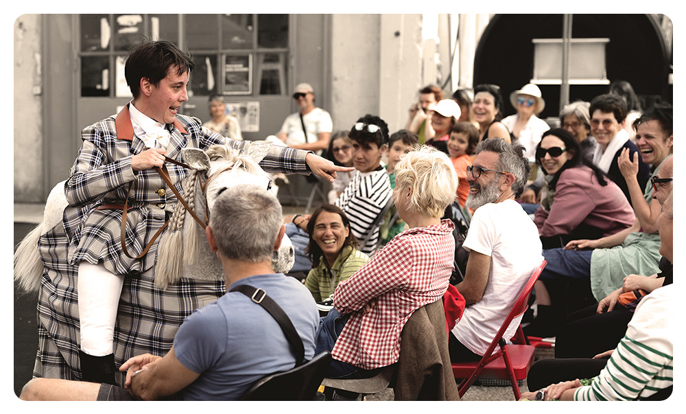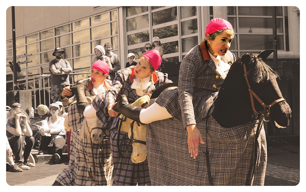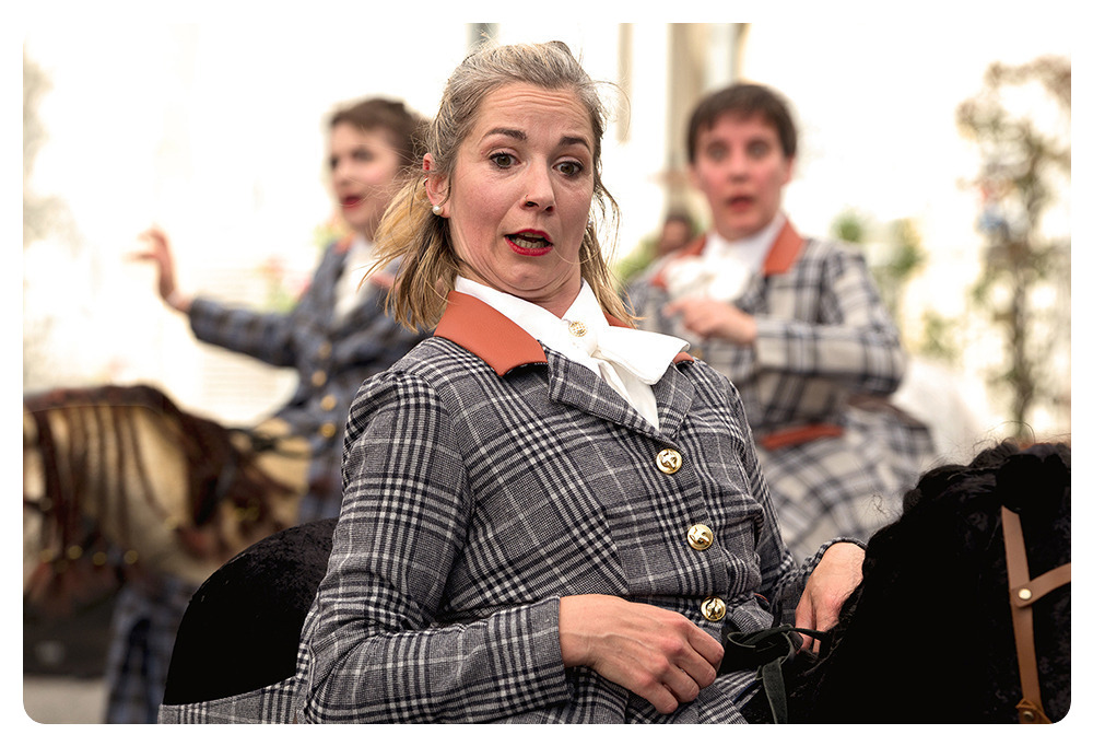 Trois équicoaches et leurs fidèles montures, presque compétentes mais très engagées, présentent un aperçu de leur formation d’une semaine aux stagiaires. Par exercices adaptés et chorégraphies décalées, ces spécialistes des comportements humain et animal vous aideront à sortir ce qu’il y a de plus positif en chacun·e d’entre nous.